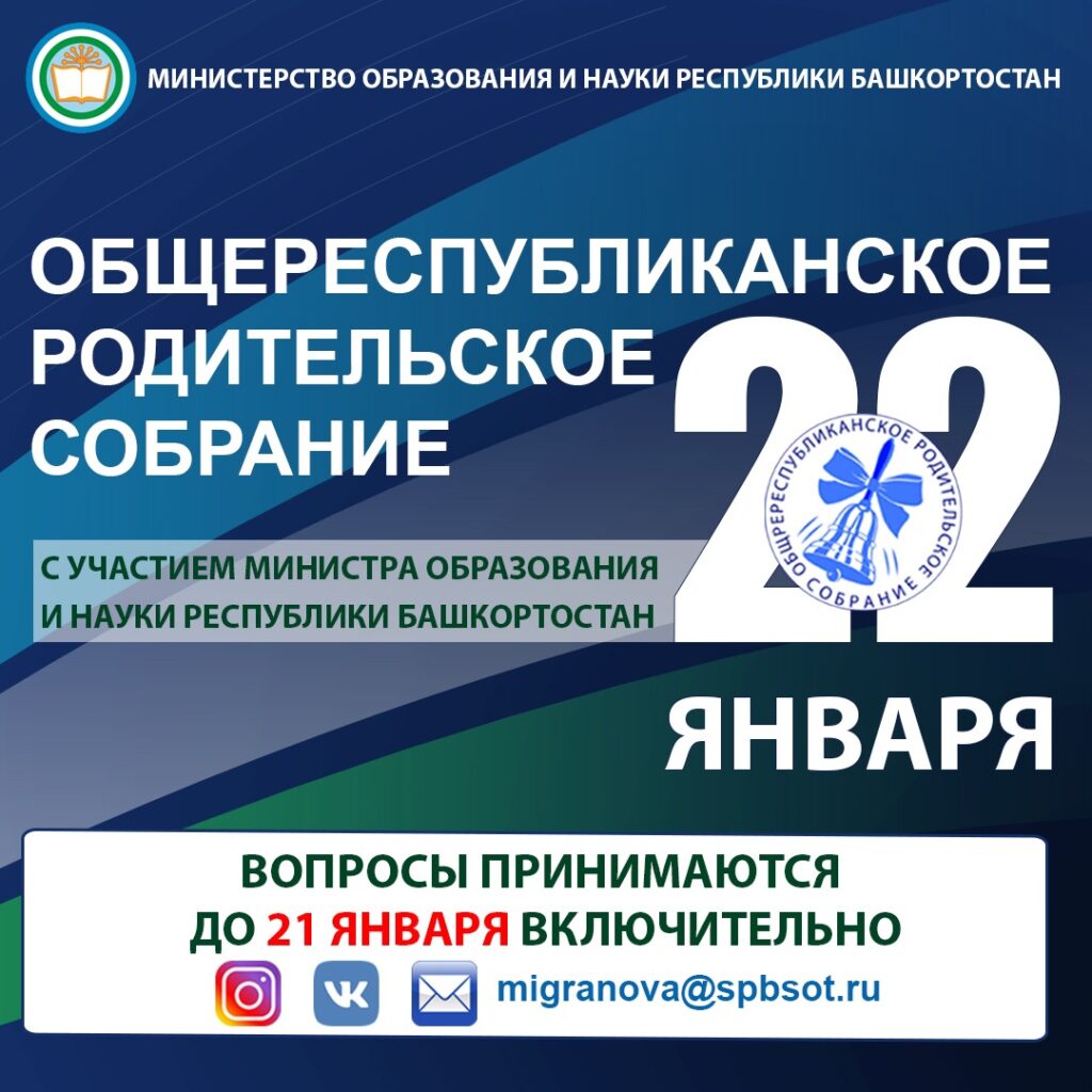 Общереспубликанское родительское собрание. Задать вопрос министру образования и науки Республики Башкортостан Хажину А.В. можно до 21 января включительно несколькими способами:
